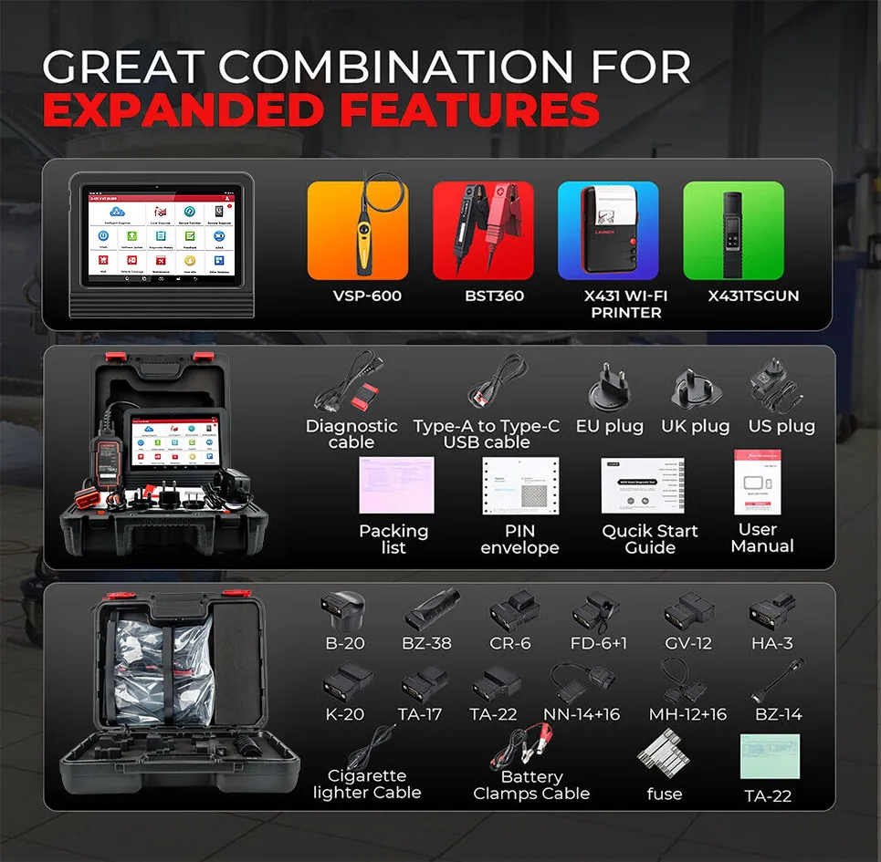 This instrument provides a wide range of diagnostic functions, from reading and clearing fault codes to performing live data analysis. It covers major systems, including the engine, transmission, ABS, airbags, and more.