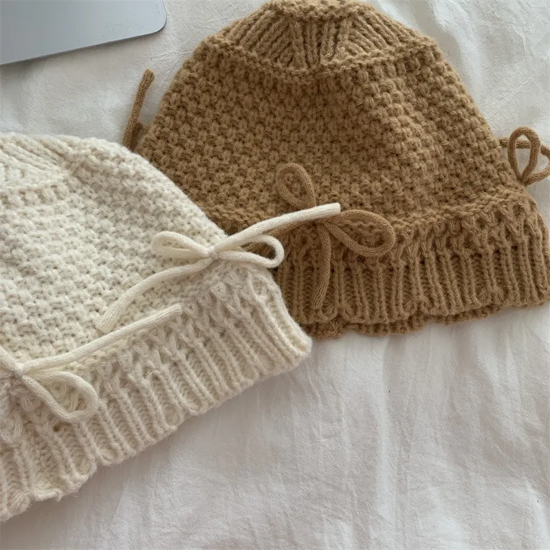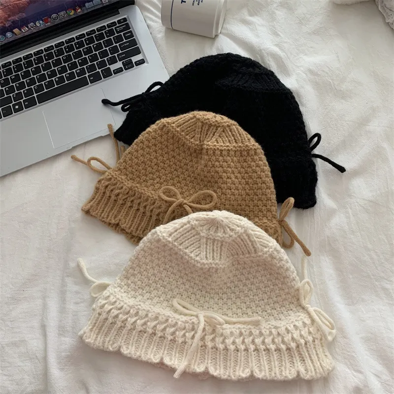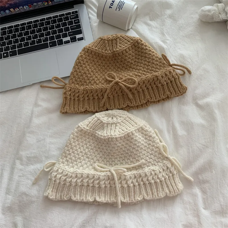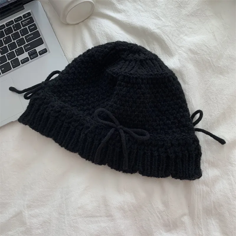 Autumn And Winter Bow Knitted Fisherman Hat Wool Bucket