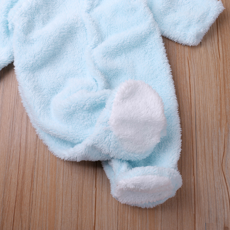 Autumn and Winter Coral Fleece Hood Long-sleeved Romper Toddler Cute Warm Jumpsuit
