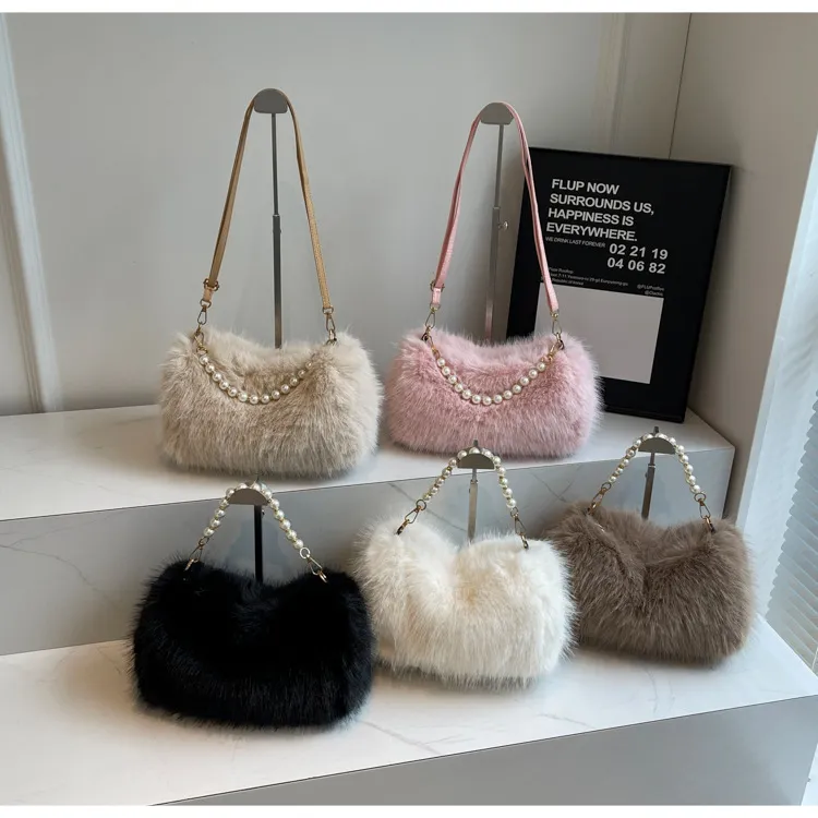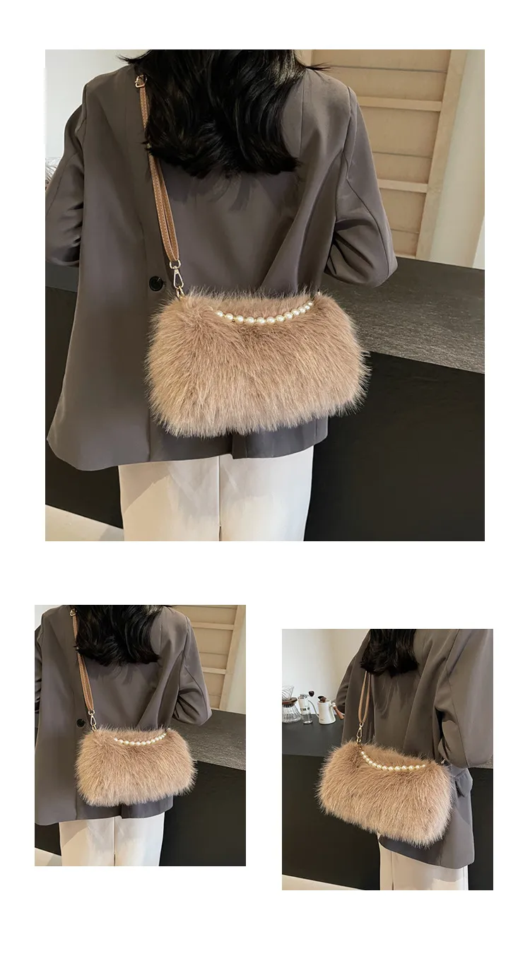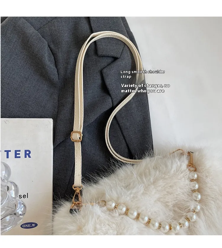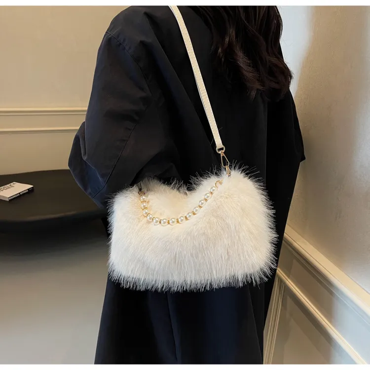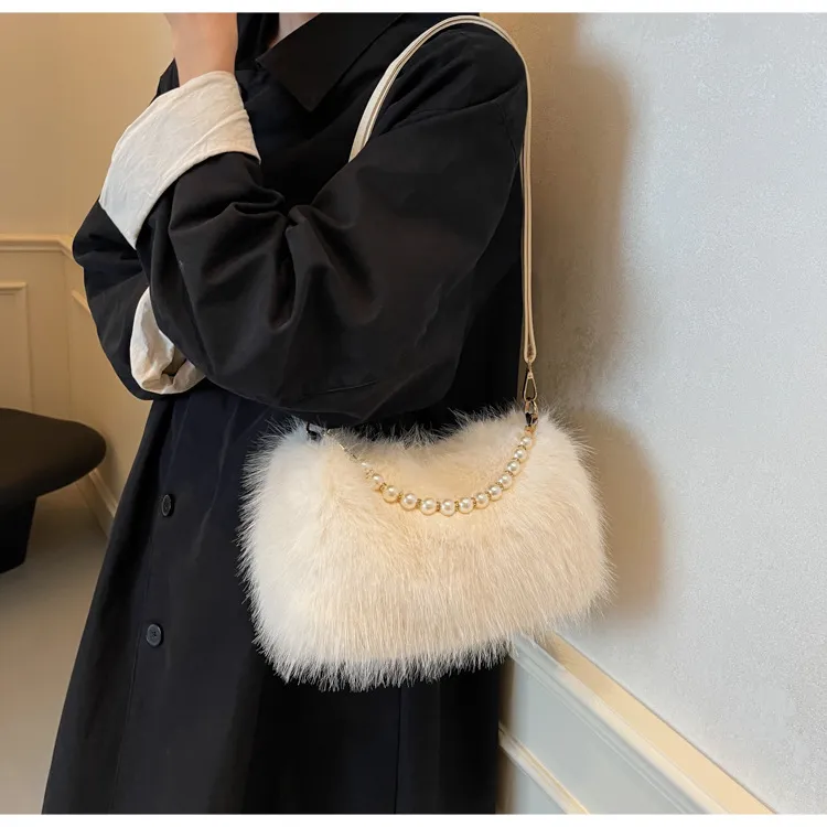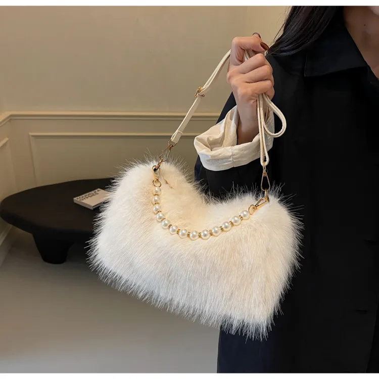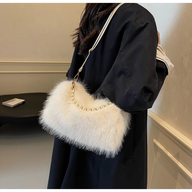 Description – Autumn And Winter Fashion Shoulder Bags Pearl Chain Crossbody Bag Versatile Commuting Armpit Plush Female Bag
