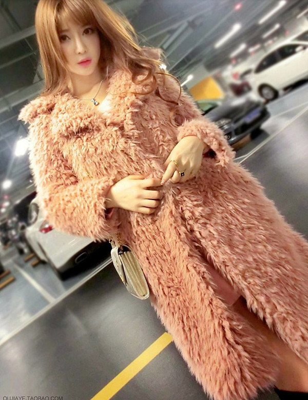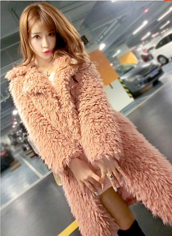 Autumn And Winter Ladies New Lamb Wool Long Trench Coat Imitation Fur Suit Coat Overcoat