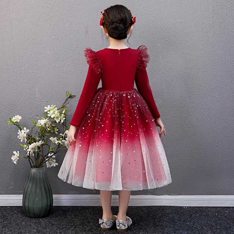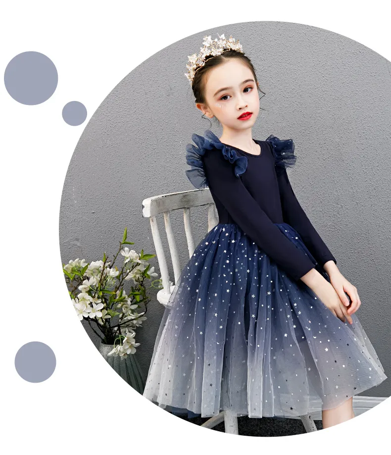 Autumn New Girls Dress Starry Sky Mesh Bubble Skirt: A Magical Look for Your Little Star