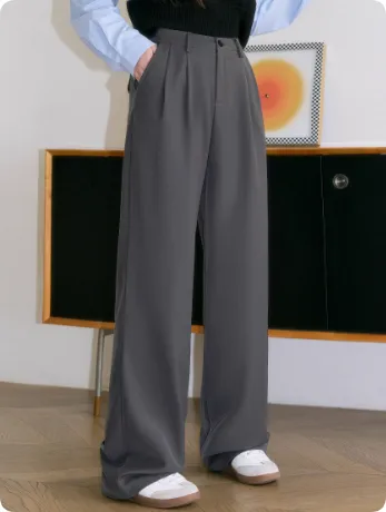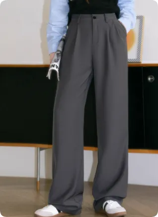Tailored with a slimming high-waisted cut, the pants gently hug the waist while flowing effortlessly through the legs, thanks to the loose and drooping fabric. This thoughtful design creates a graceful, elongated look that flatters a wide range of body types and adds instant polish to any outfit.