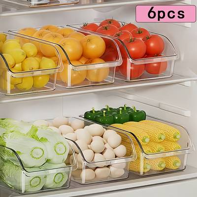 Awaoko 6pcs Large-Capacity Transparent Refrigerator Storage Boxes Stackable PET Organiser Bins