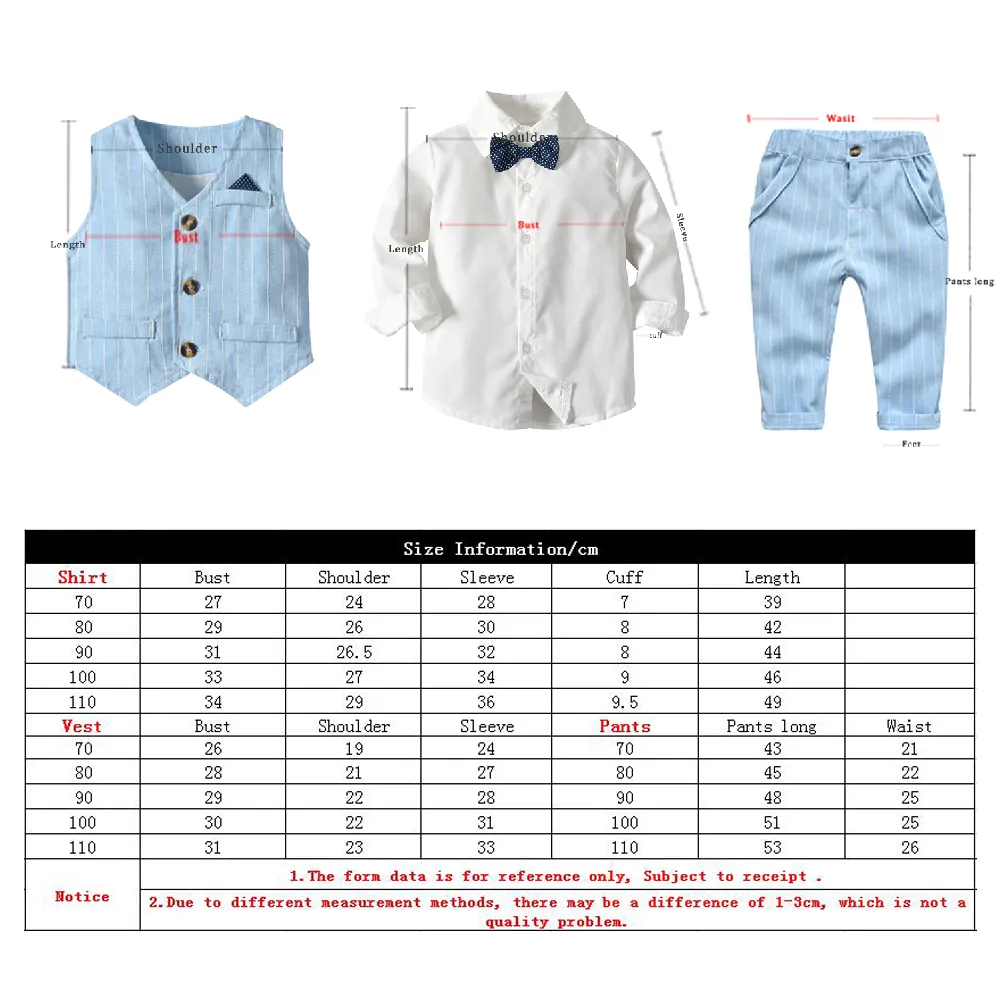 Baby Boy Suit, White Shirt Suit With Tie, Striped Vest, Three-piece Pants, Spring and Autumn