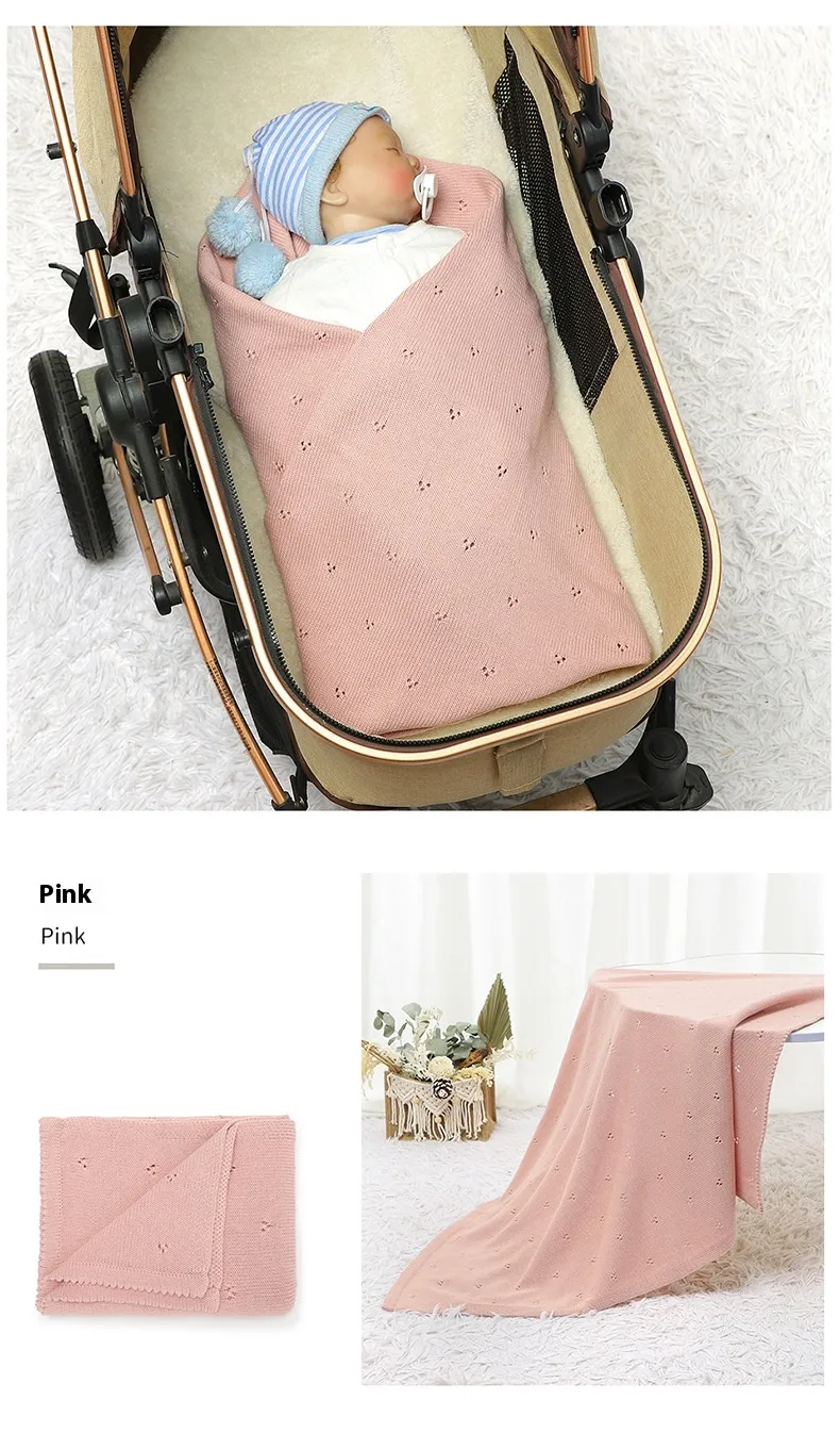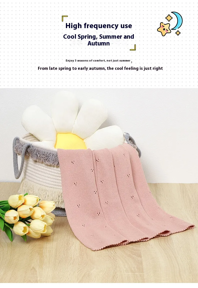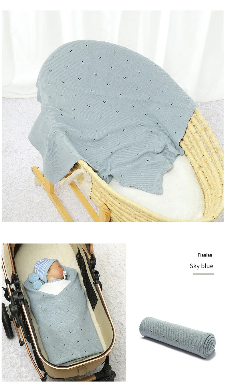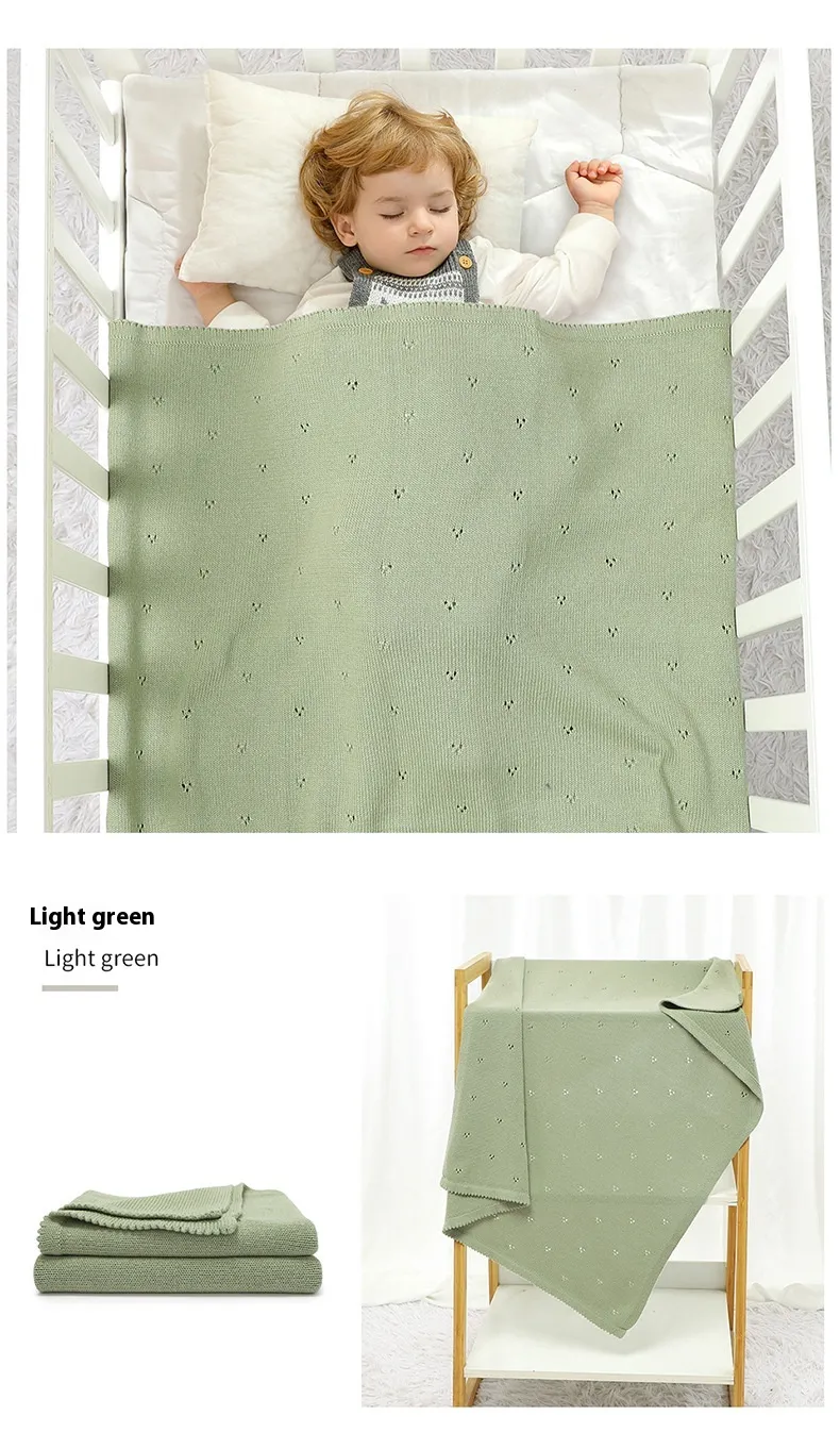 Baby Boys' and Girls' Knitted Solid Color Hollow-out Dot Quilt: Comfort and Style for Your Little One