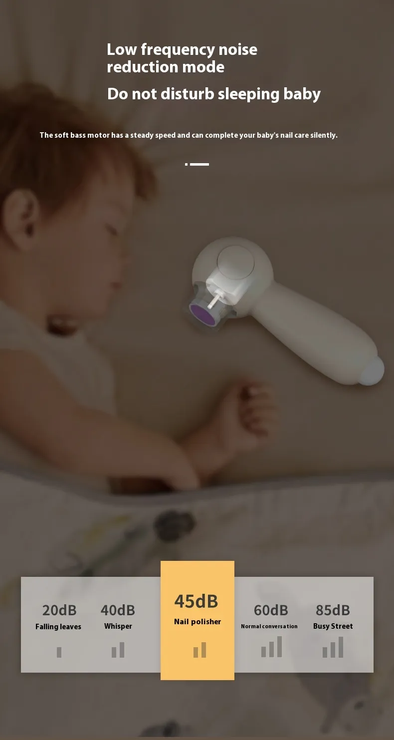 Babies are sensitive to loud noises, and trimming their nails can be a challenge if the tools are too noisy. The low-noise operation of the Electric Nail Grinder makes nail trimming a relaxing and positive experience, reducing stress for both babies and parents.
