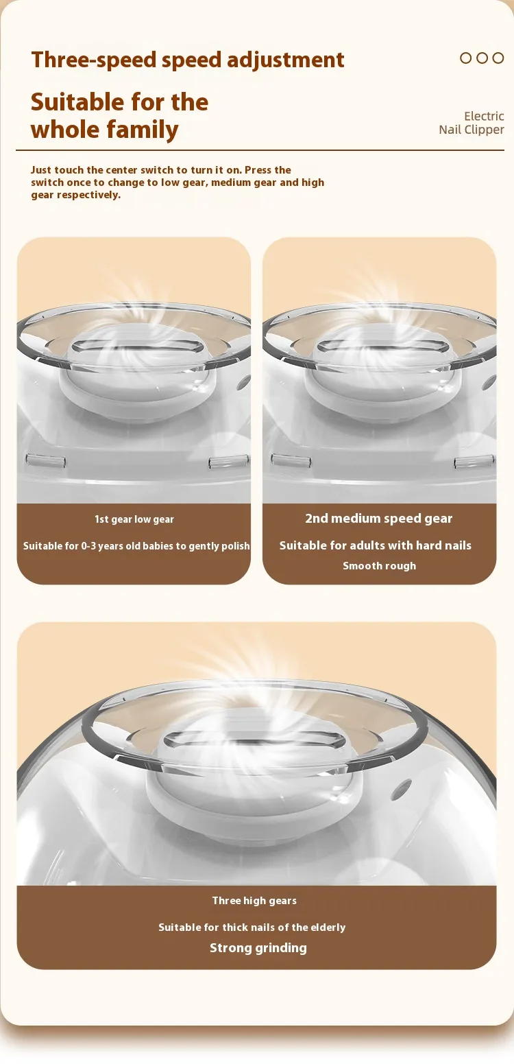 • Multiple Settings: Adjustable speeds for infants of different ages and nail thicknesses.