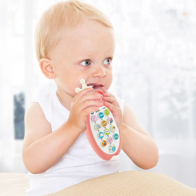 Baby cell phone enlightenment music cell phone light 3 year old baby creative early education learning bite radish phone toy