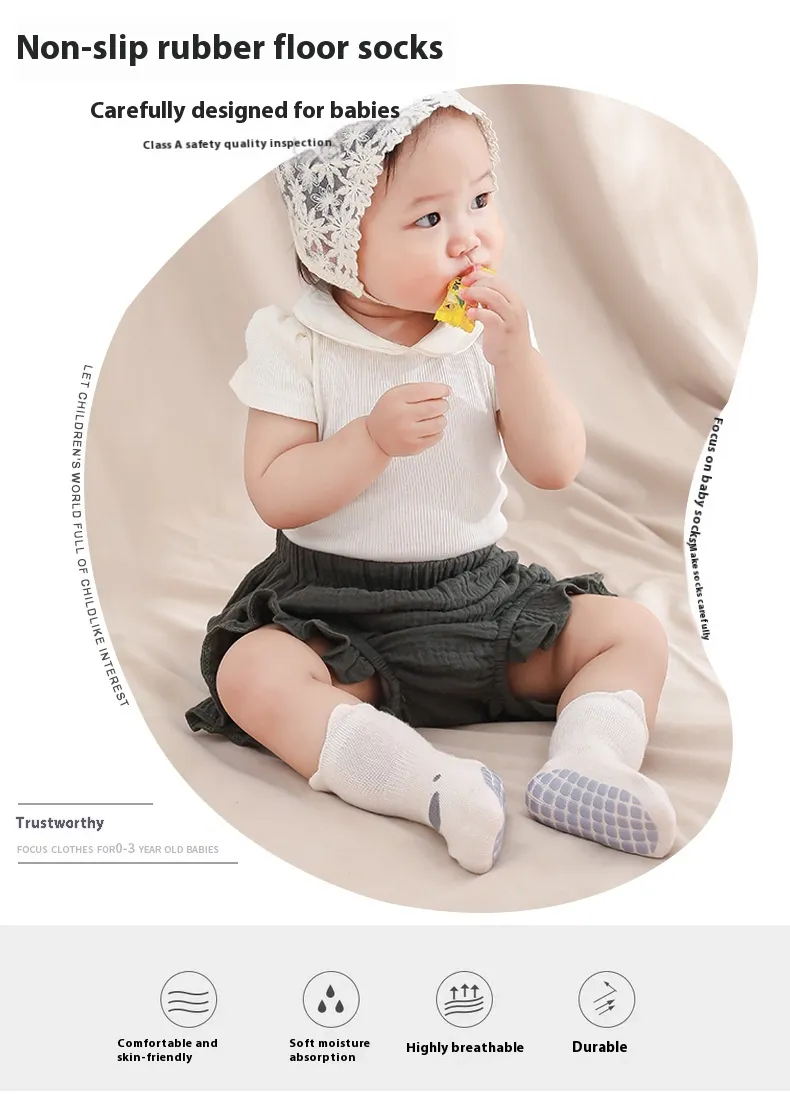 Thanks to the soft cotton material, these socks are gentle on your baby’s delicate skin. They provide all-day comfort, making them perfect for both casual use at home and outings during the spring and autumn months.