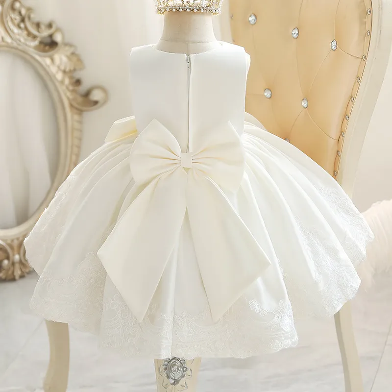 Crafted from high-quality materials, this dress is designed with soft fabric to ensure maximum comfort while still looking stunning. The exquisite details, including delicate lace, tulle, and ribbon accents, create a sophisticated, timeless look. Whether your little one is celebrating her first birthday or participating in a wedding, this dress will add a touch of charm and elegance to her day.