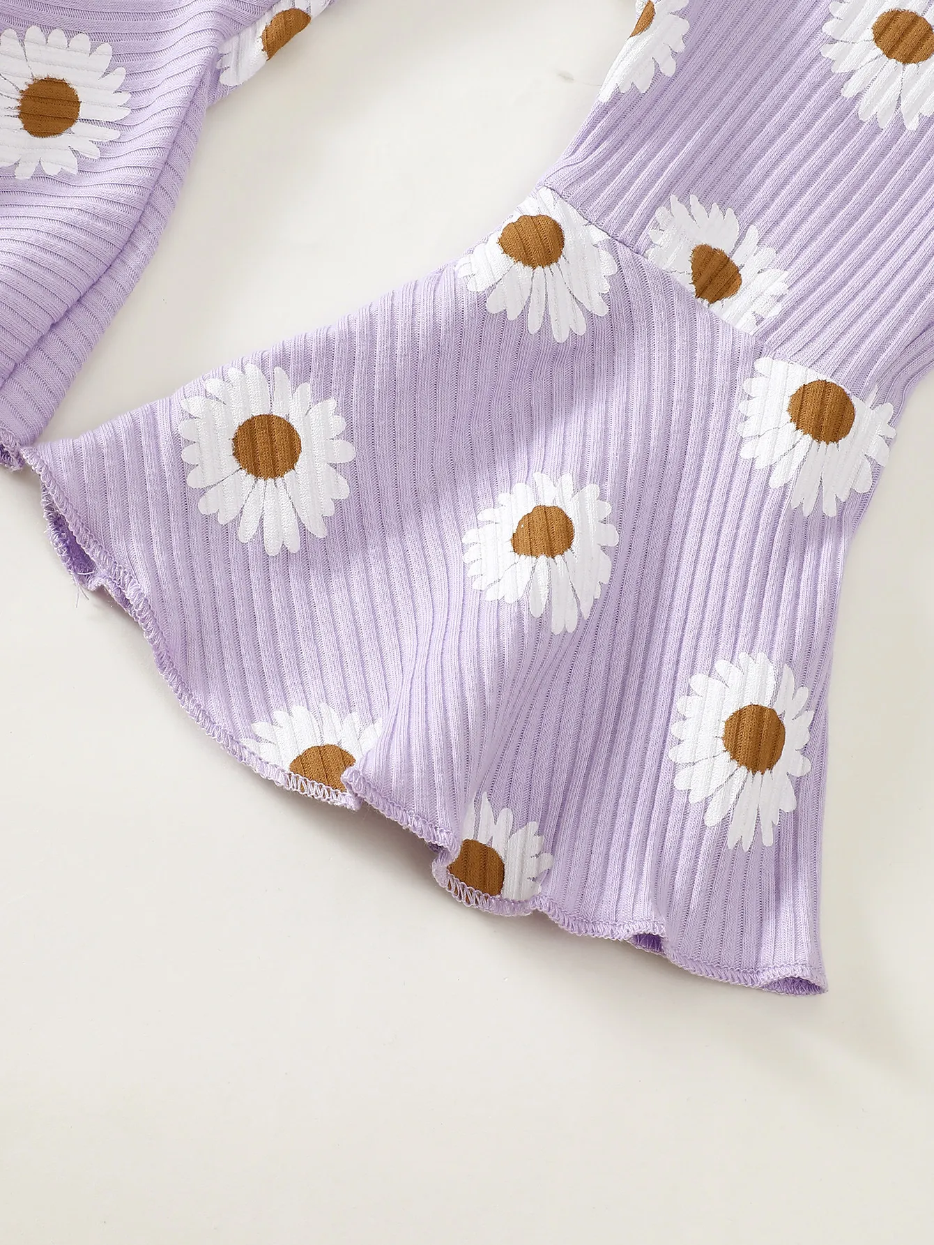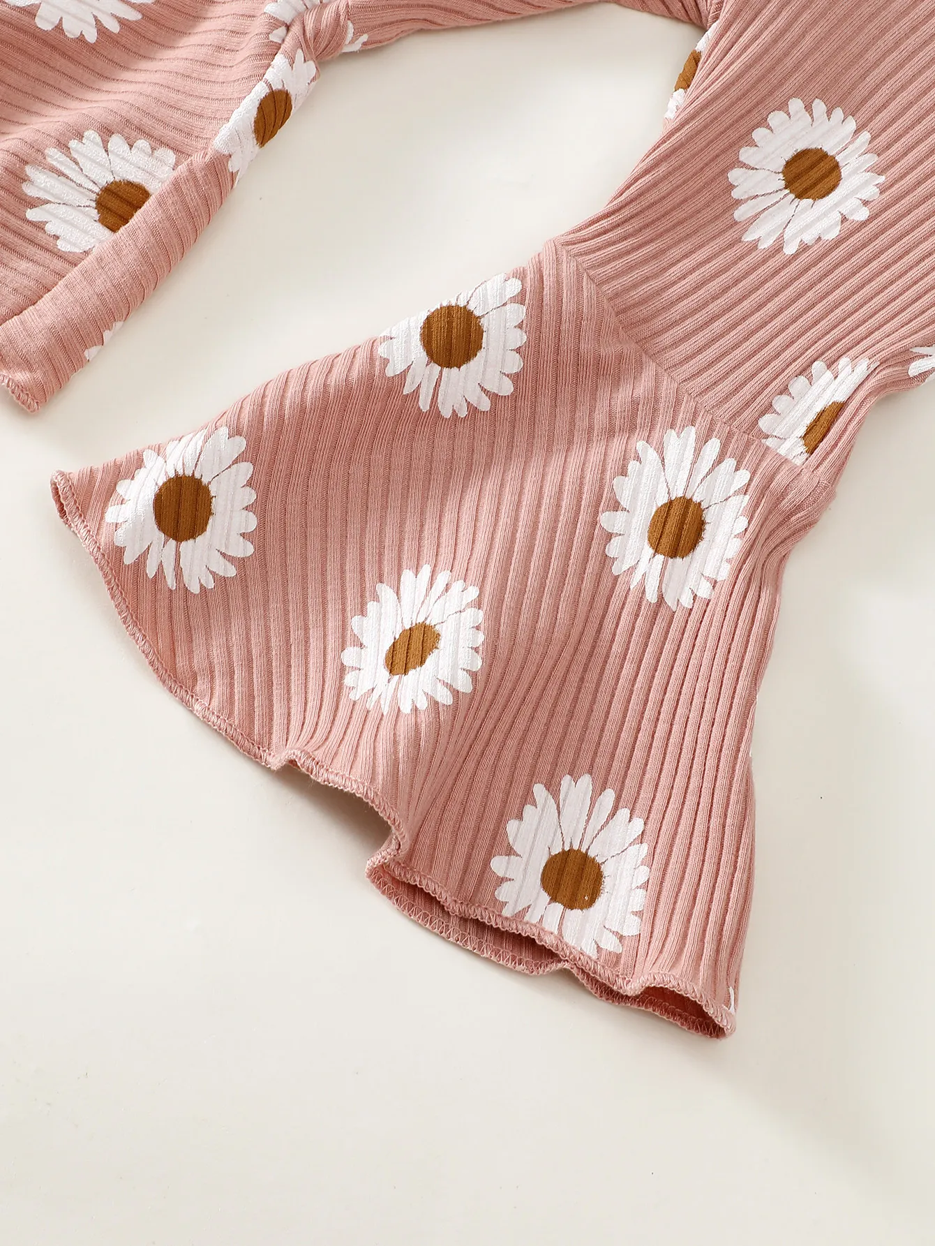 The long sleeve sunken stripe top offers enough warmth during chilly days, while the flower print trousers are perfect for layering with tights or leggings for extra warmth. This set is versatile enough to be worn across seasons. During warmer months, simply pair the outfit with cute shoes or sandals, and in colder weather, add a cozy jacket or sweater to keep your baby girl snug.