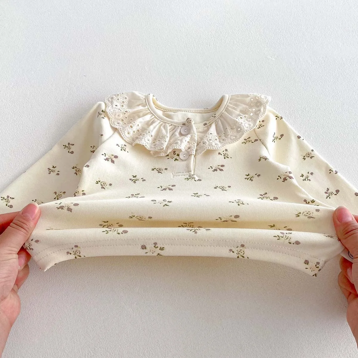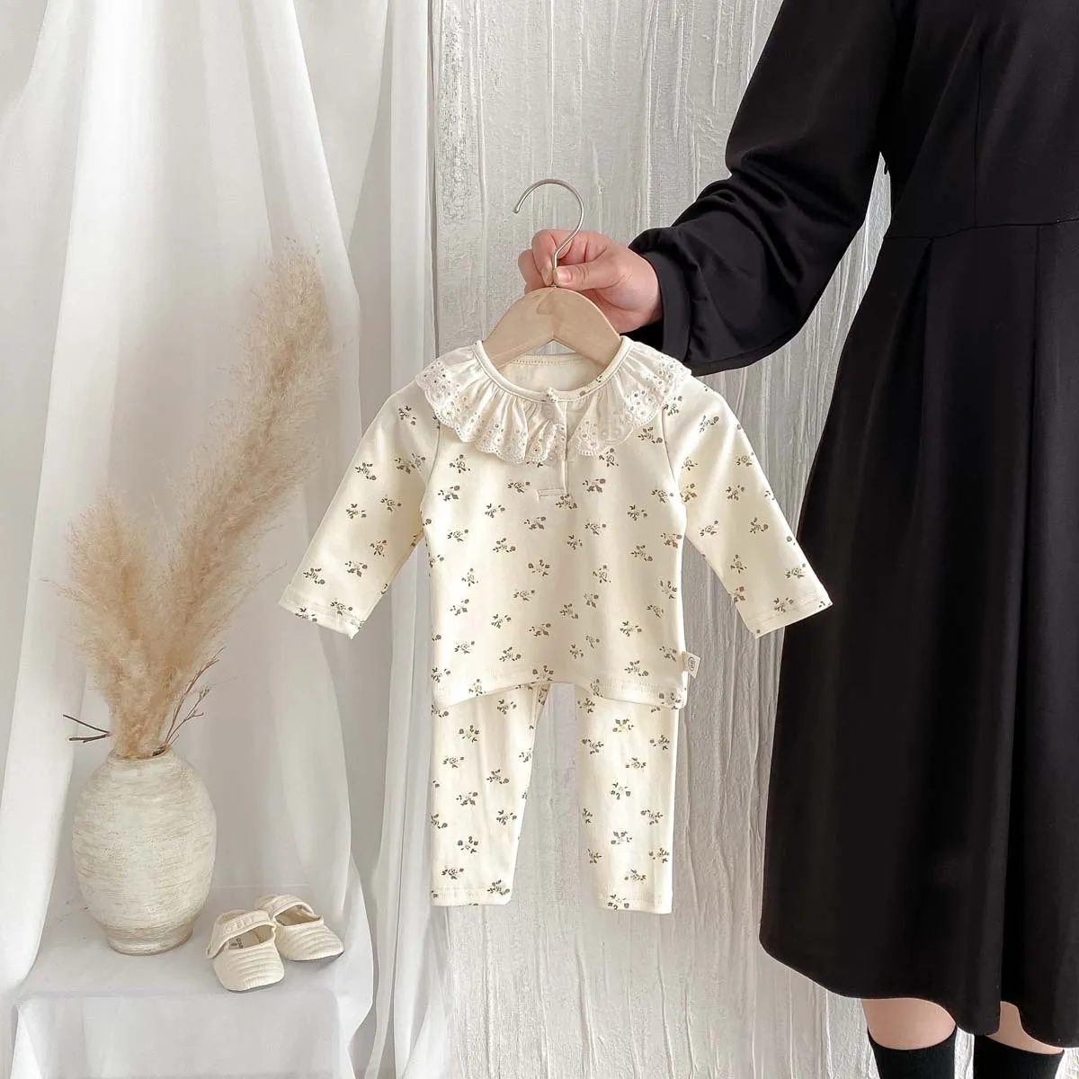 Baby Girl Lace Ruffled Collar Home Wear Two-Piece Set Bottoming