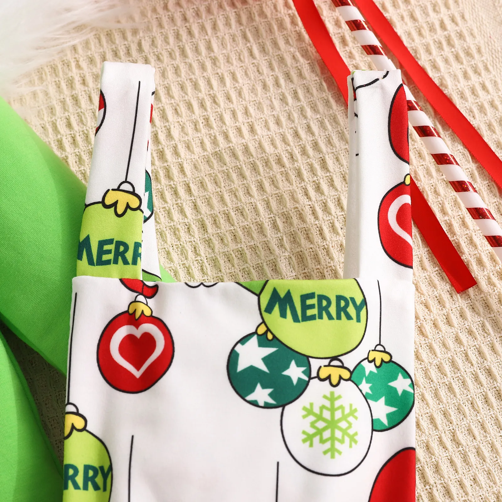 Baby Girl's New Green Fur Strange Printed Skirt Suit