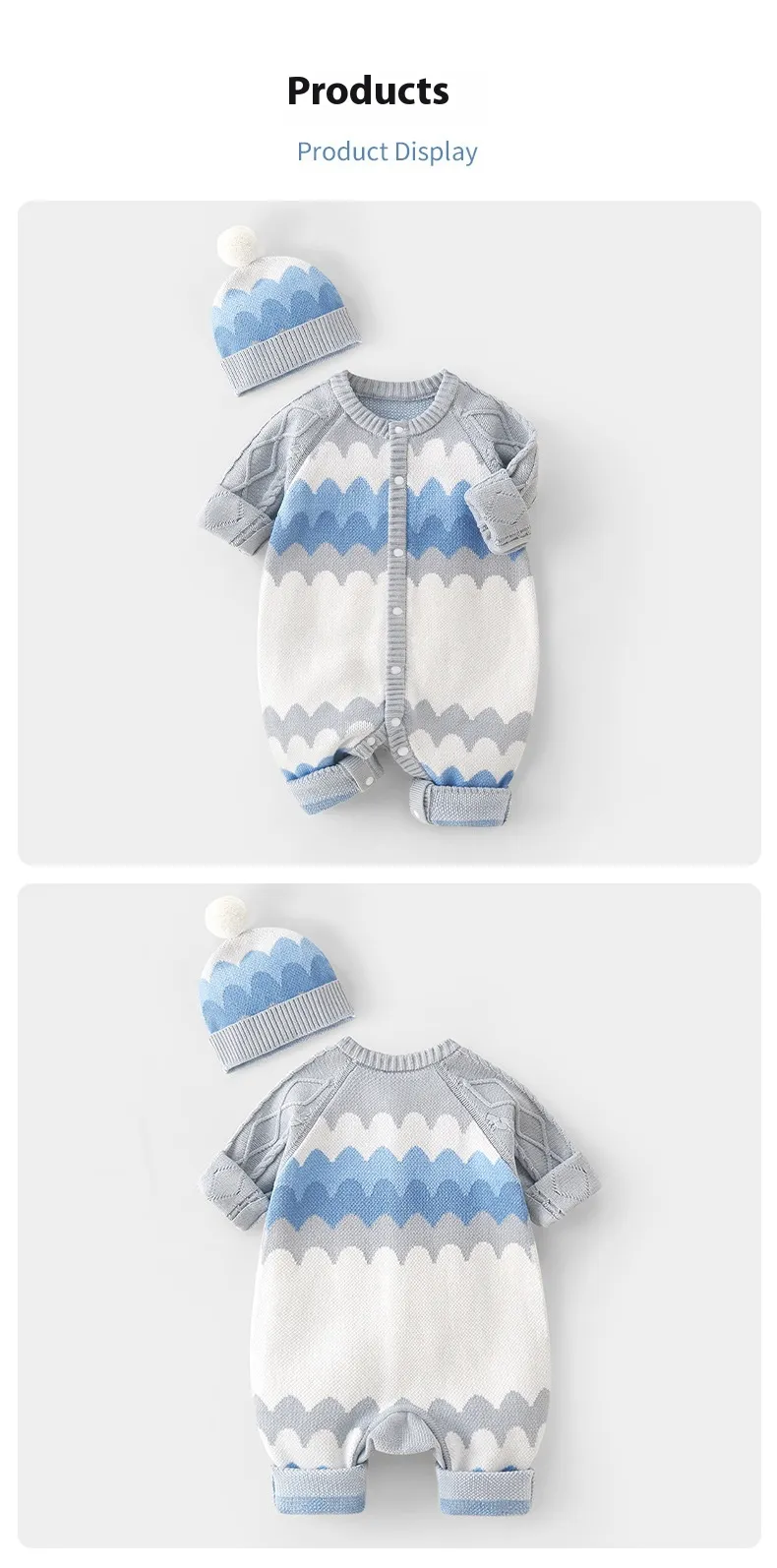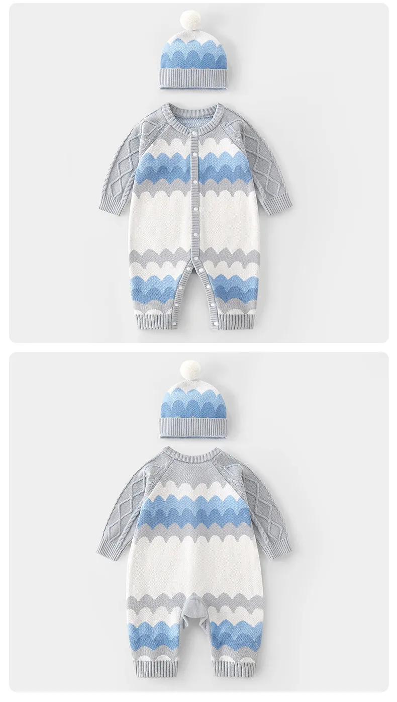 Baby Hooded Long-sleeved Knitted Cotton Jumpsuit Hat Suit
