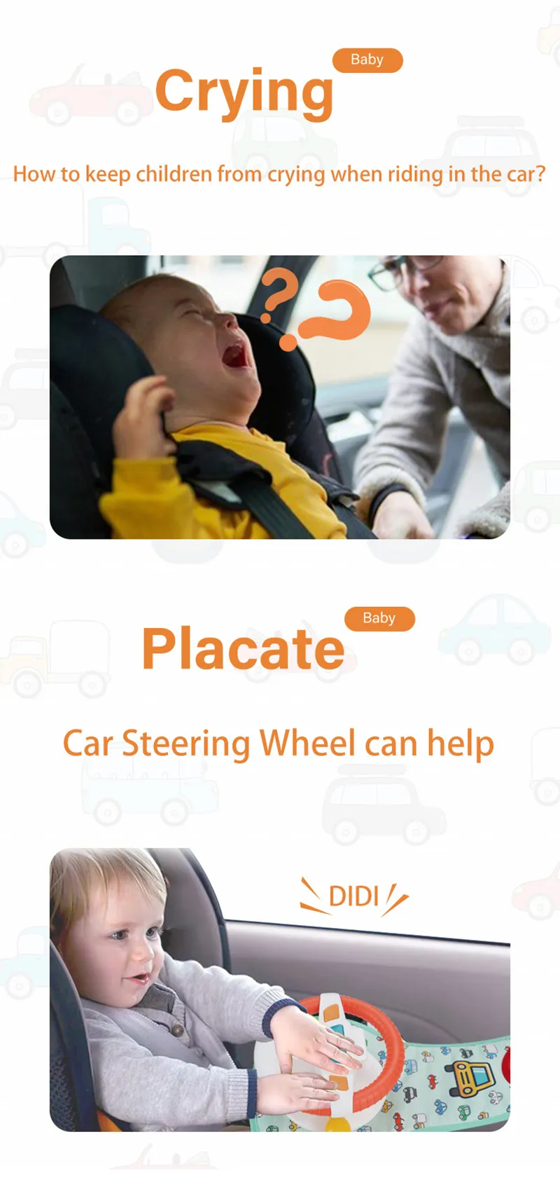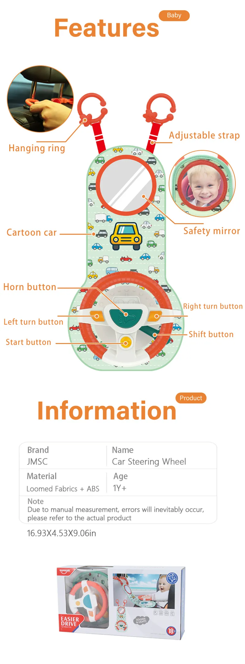 2. Joy Provider: The toy provides entertainment for young children sitting in forwarding car seats, allowing infants to imitate the actions