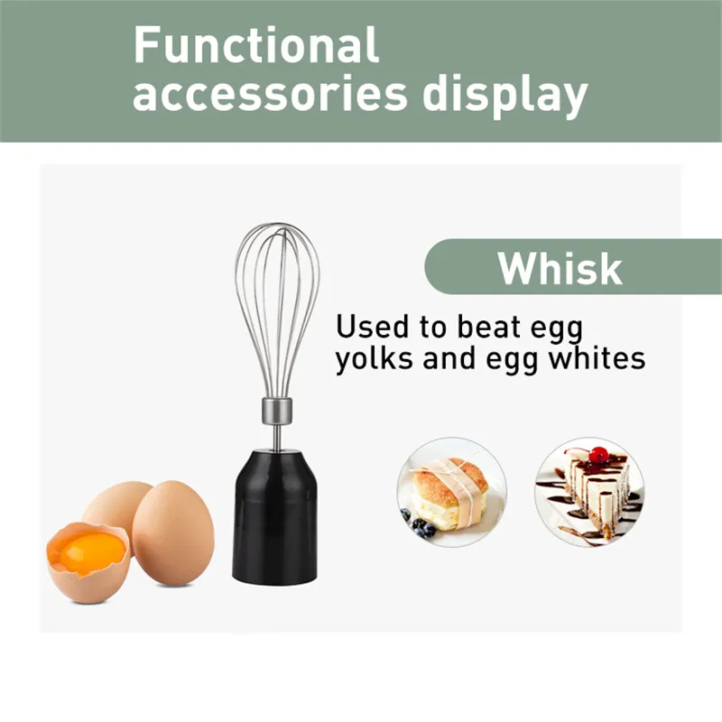 Functions: Juicing, cutting vegetables, mincing meat, dry grinding, stirring, beating eggs, making milkshakes, mixing