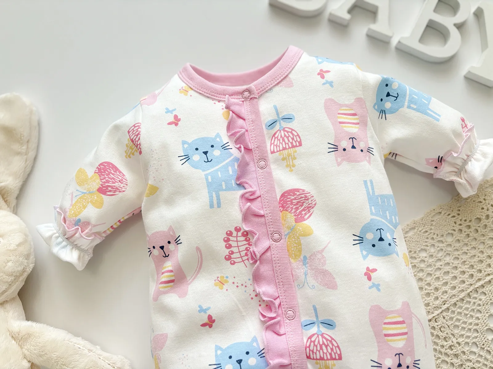 Made from 100% high-quality cotton, the jumpsuit is gentle on delicate baby skin and provides all-day comfort and warmth. The long sleeves and full-length design ensure your baby stays cozy during cooler days or evenings. Easy snap closures or zipper options allow quick dressing and diaper changes, making life easier for parents.
