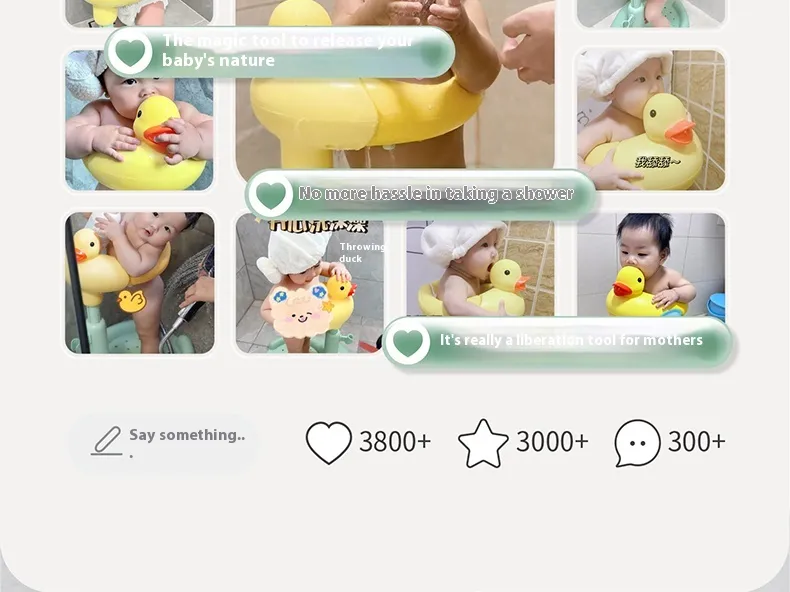 The Baby Standing Red Mouth Duck Bath Table is an innovative bathing solution designed to make bath time safe, fun, and easy for both