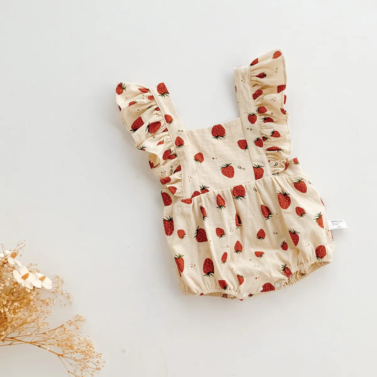 The strawberry theme itself is more than a visual motif — it represents playfulness, growth, freshness, and the joyful energy of early life. These associations enrich each moment your baby wears the outfit, from family brunches and outdoor picnics to seasonal photos and casual daily activities.