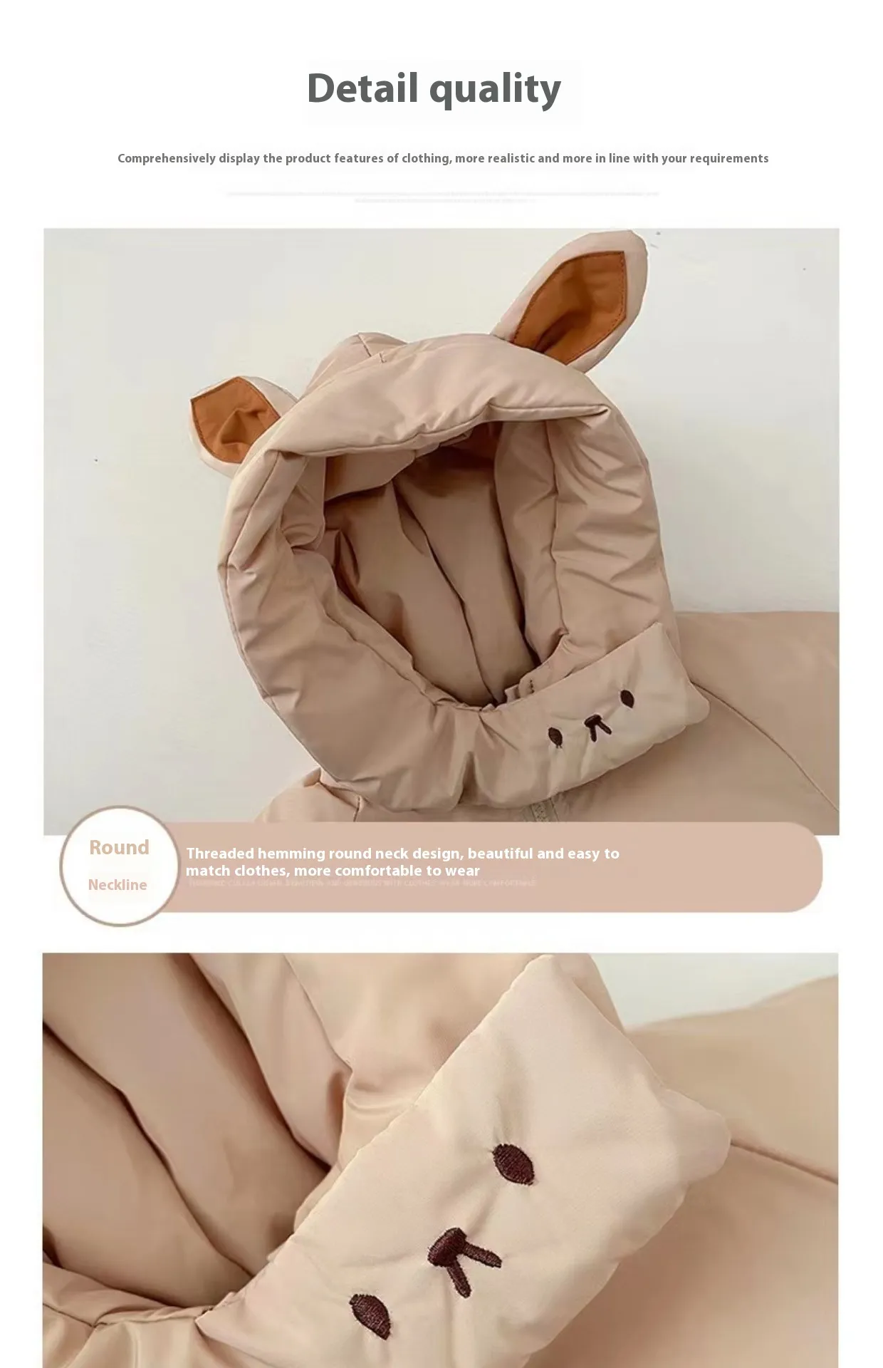 Materials often include cotton blends, fleece, knit wool, and water‑resistant shells that help trap warmth and wick moisture away from the body. Thermal or quilted linings add insulating layers, while stretchable fabrics ensure comfort without constriction. Practical design elements — such as snug cuffs, adjustable hoods, secure closures (snap buttons or gentle zippers), and reinforced seams — enhance usability and durability while reducing heat loss.