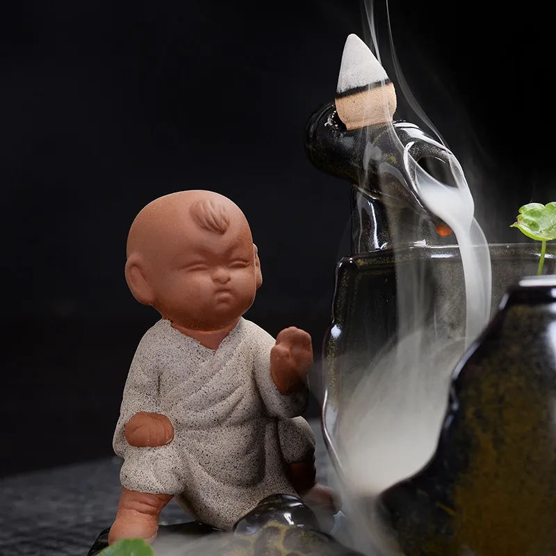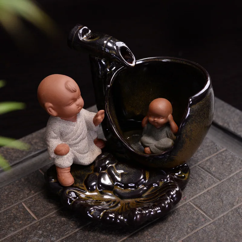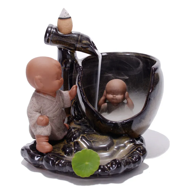 Backflow Incense Burner Ceramic Creative Ornaments Large Size Sima Guang Smashing Cylinder Little Monk Home Tea Ceremony Tower Sandalwood Aromatherapy Burner