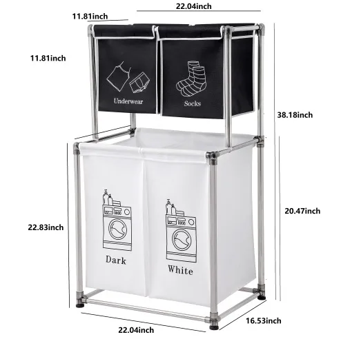 - STRONG FRAME - STQCPJ laundry sorter uses a double-layer design, which is stronger than a single-layer structure because it reduces the pressure and burden of the crossbar. The overall frame is made of hard aluminum to enhance hardness, and the non-slip design at the bottom provides the final protect of stability.