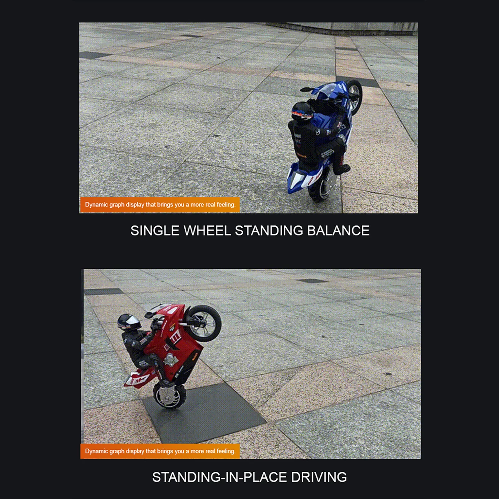 self-stabilized and balanced, subverting the traditional remote control motorcycle toy. Using traction smart wheels, 16 rubber side wheels