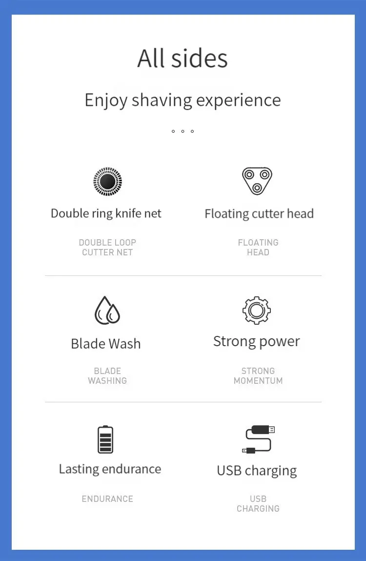 Power Mode: USB ChargingOperating Voltage: ≤36VNumber Of Razors: 3Number Of Levels: 1Cleaning Method: Washable RazorRazor Material: Stainless SteelProduct Type: Floatingbattery life: >60 MinutesBrand: BALASHOVBattery