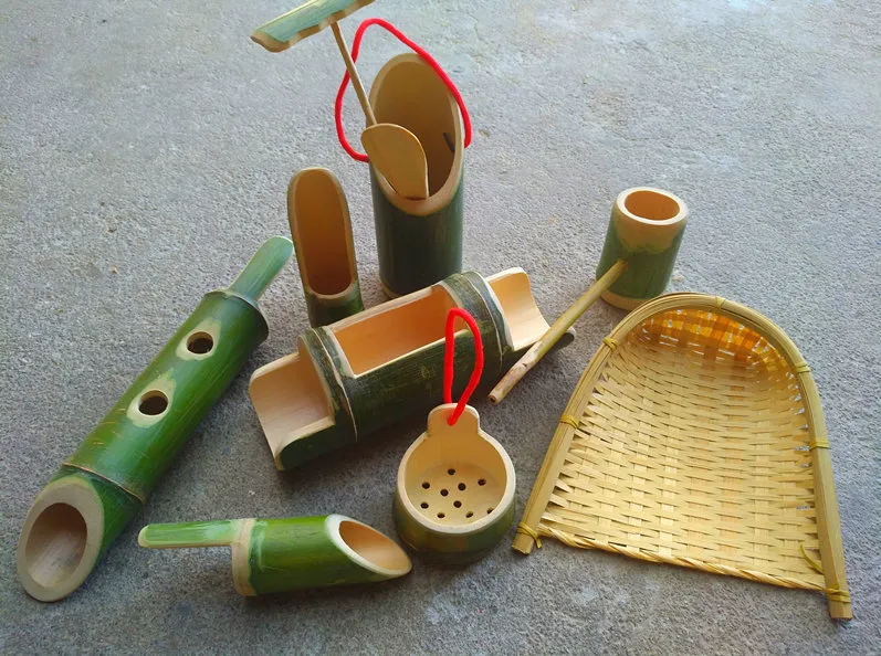Bamboo tube toys, bamboo products, children''s sand water toys set 10 sets of sand water toys, play with sand and play with water toys