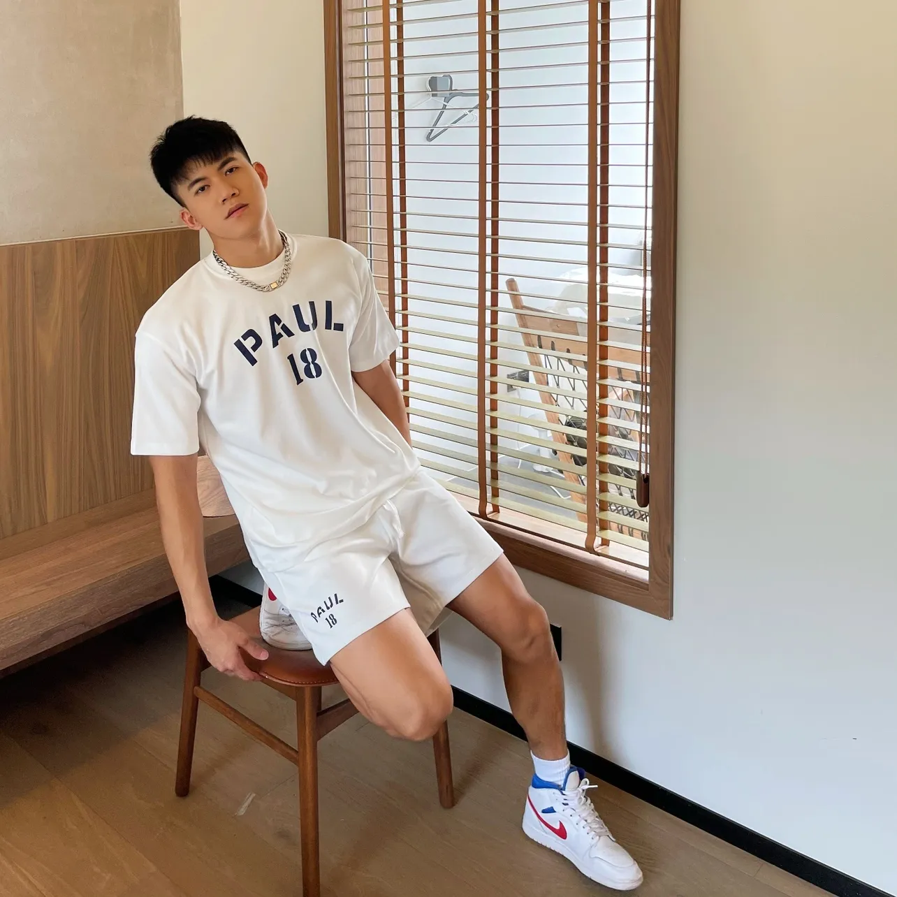 Bare Arms Summer New Simple Print Breathable Sports Loose Casual Suit Short Sleeve Shorts Two Piece Set