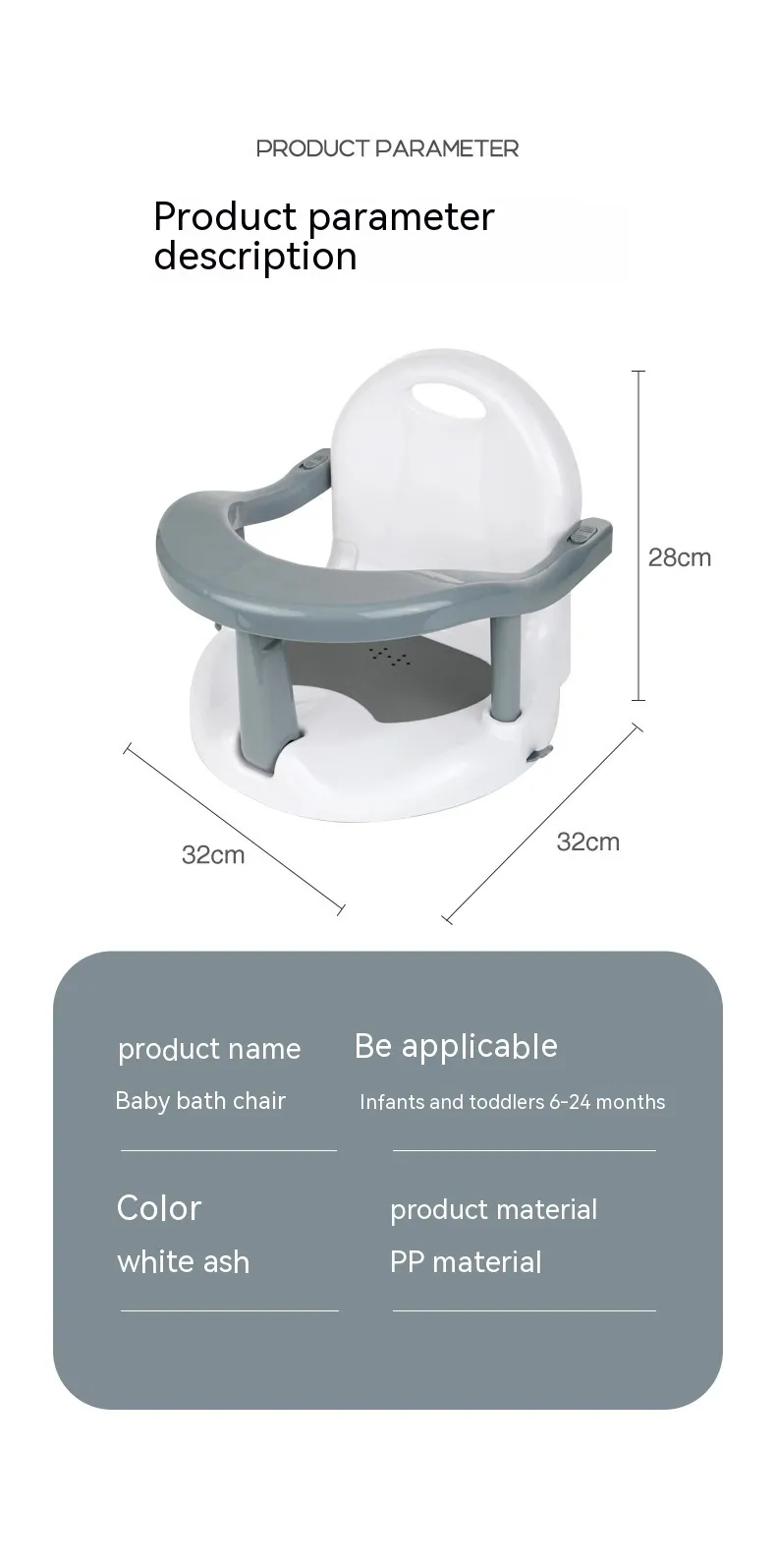 Non-Slip Base: Equipped with a stable, non-slip base, the bath seat stays securely in place to prevent sliding or tipping.