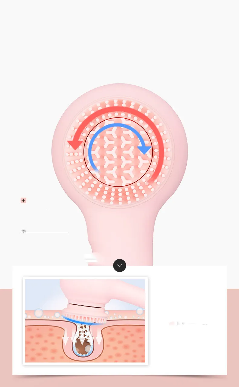 Features of skin cleaning: *Four rotating brush heads, intelligent protection system, three-speed speed regulation, waterproof IPX7 *Kneading massage, the back will glow *Gently clean, exfoliate, without hurting the skin *The first two-way rotating brush head, clean The capacity is twice that of the one-way rotating brush head, and it can be used in SPA cleaners*. Four brush heads can thoroughly clean the skin. * IPX7 waterproof, no water leakage and comfortable during bathing, whole body waterproof