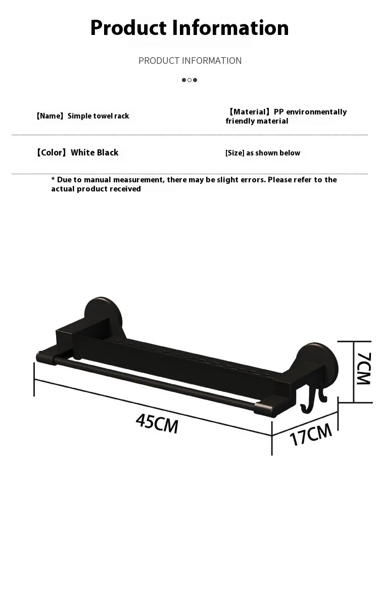 The Bathroom Storage Rack is the ideal solution for organizing your bathroom without the hassle of drilling holes in the wall. This plastic punch-free bath towel rack offers a convenient and easy-to-install way to hang your towels, saving space while keeping your bathroom neat and tidy. Its versatile design makes it perfect for hanging bath towels, hand towels, robes, or other bathroom essentials, ensuring everything stays organized and within reach.