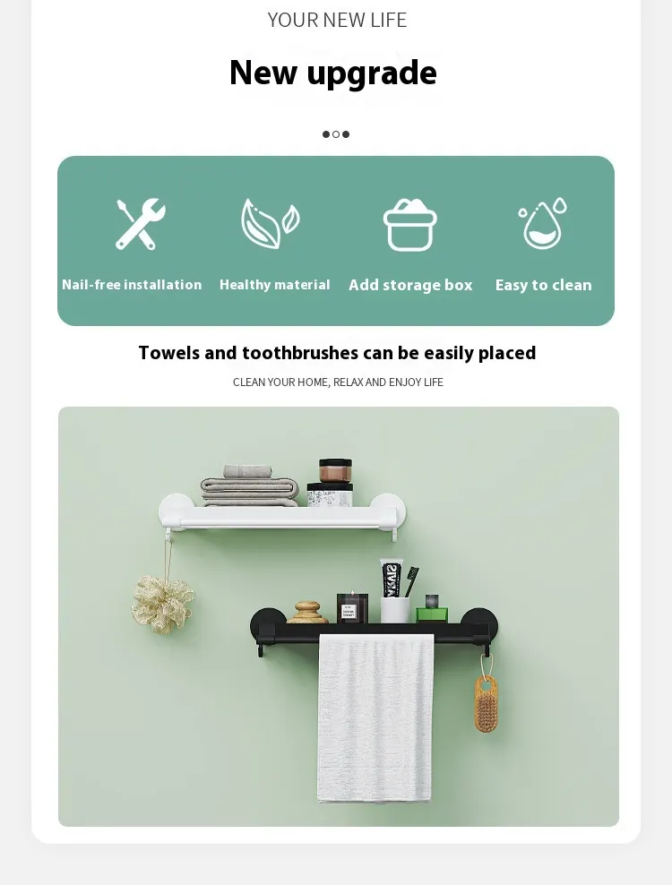 The Bathroom Storage Rack is the ultimate solution for anyone looking to organize their bathroom without the need for drilling or permanent installation. Its punch-free installation, durable plastic construction, and space-saving design make it the perfect choice for storing towels, robes, and other bathroom essentials. Whether you’re in a rental apartment, small home, or simply looking for a more efficient way to organize your bathroom, this rack provides a functional and stylish solution.
