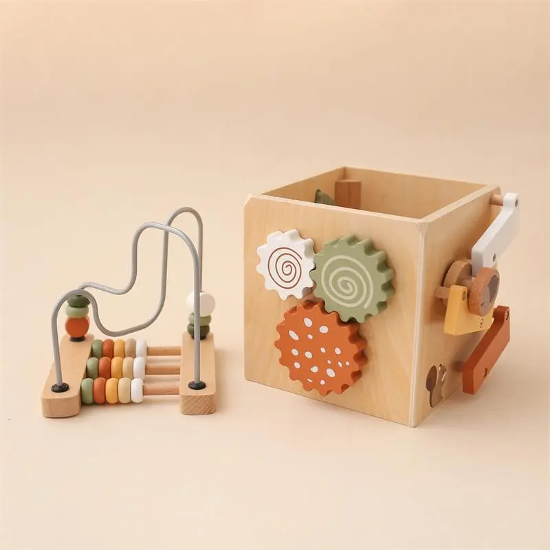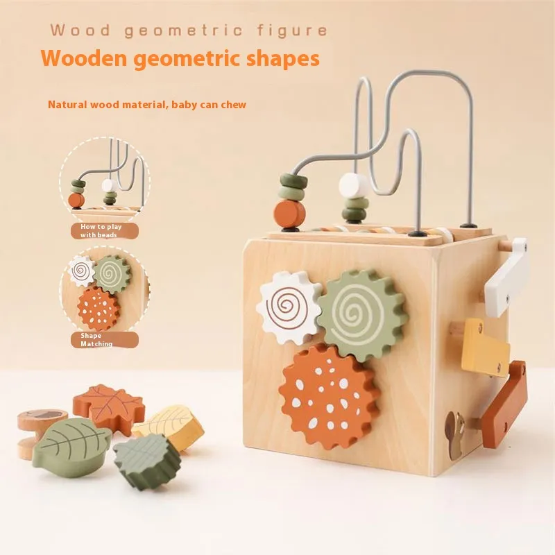 Bead-stringing Toy Shape Matching Five-in-one Toy Wooden Busy Box