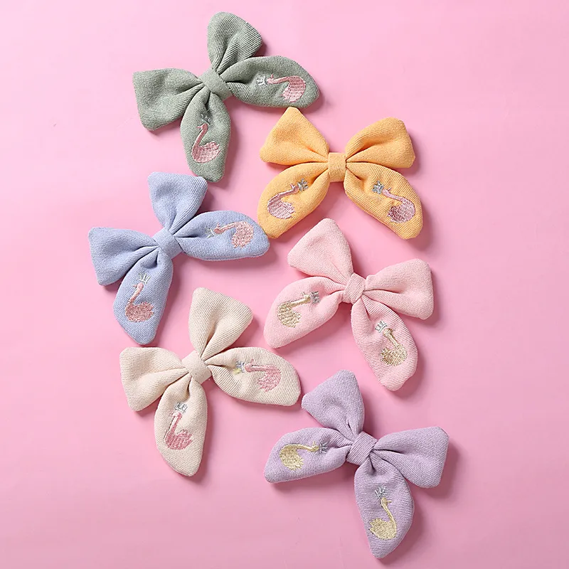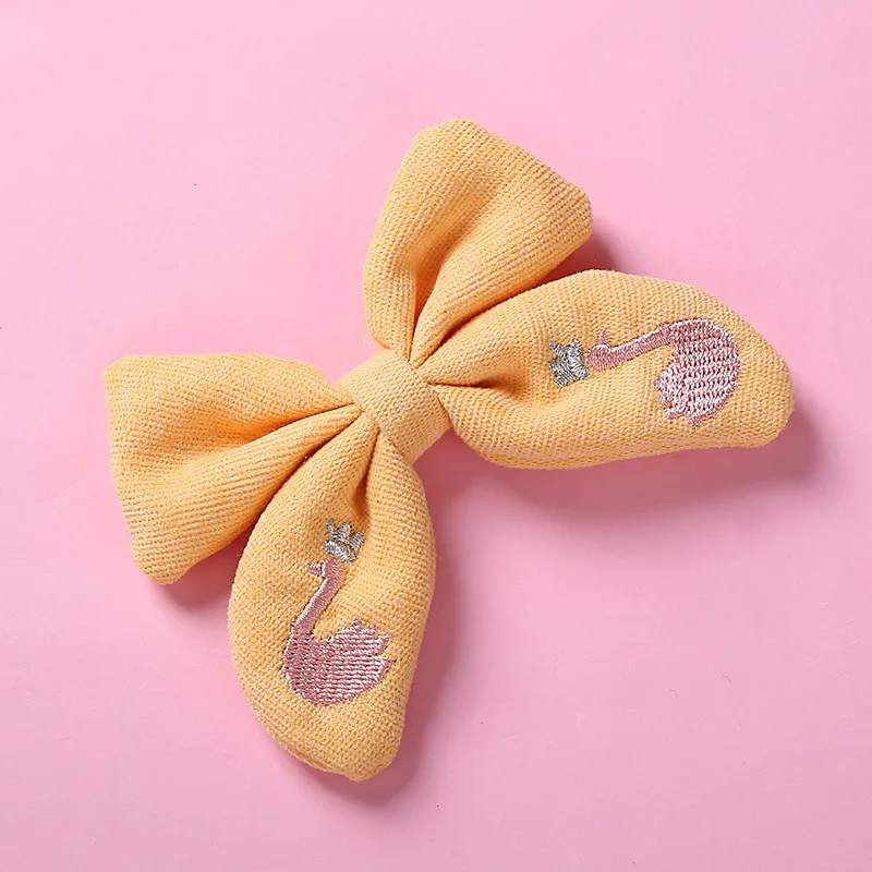 Beautifully Embroidered Cotton Children's Bow Hair Clip