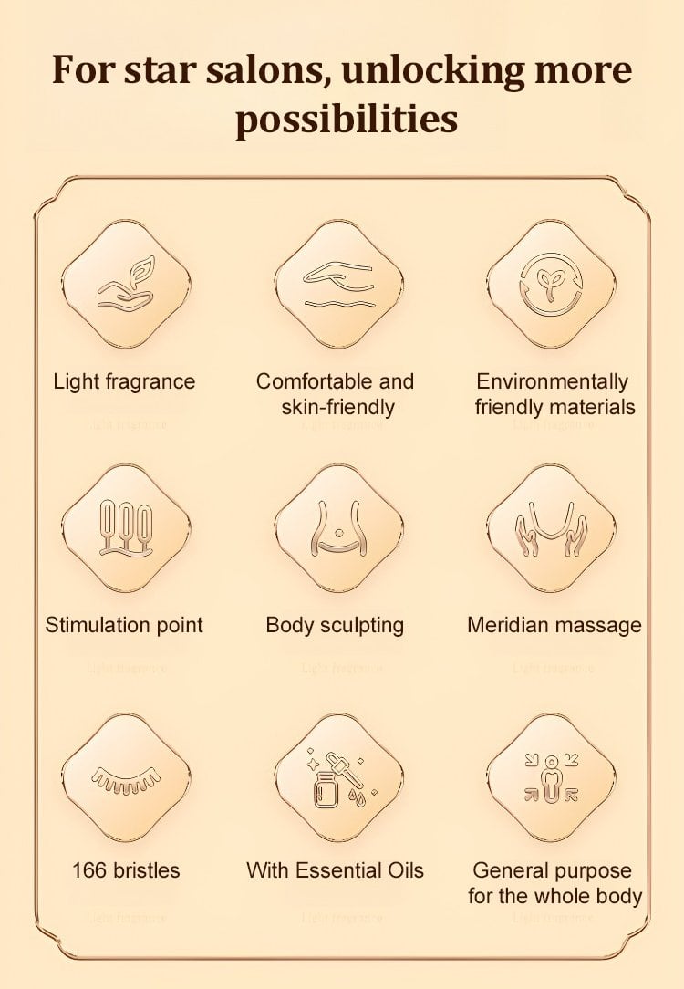 Introducing the Beauty Salon Professional Custom Meridian Brush—a revolutionary tool designed to elevate your self-care routine and bring professional spa results into the comfort of your own home. This meticulously crafted brush is not just any ordinary massage tool; it's designed to stimulate your body's meridians, helping to release tension, improve circulation, and promote overall well-being.