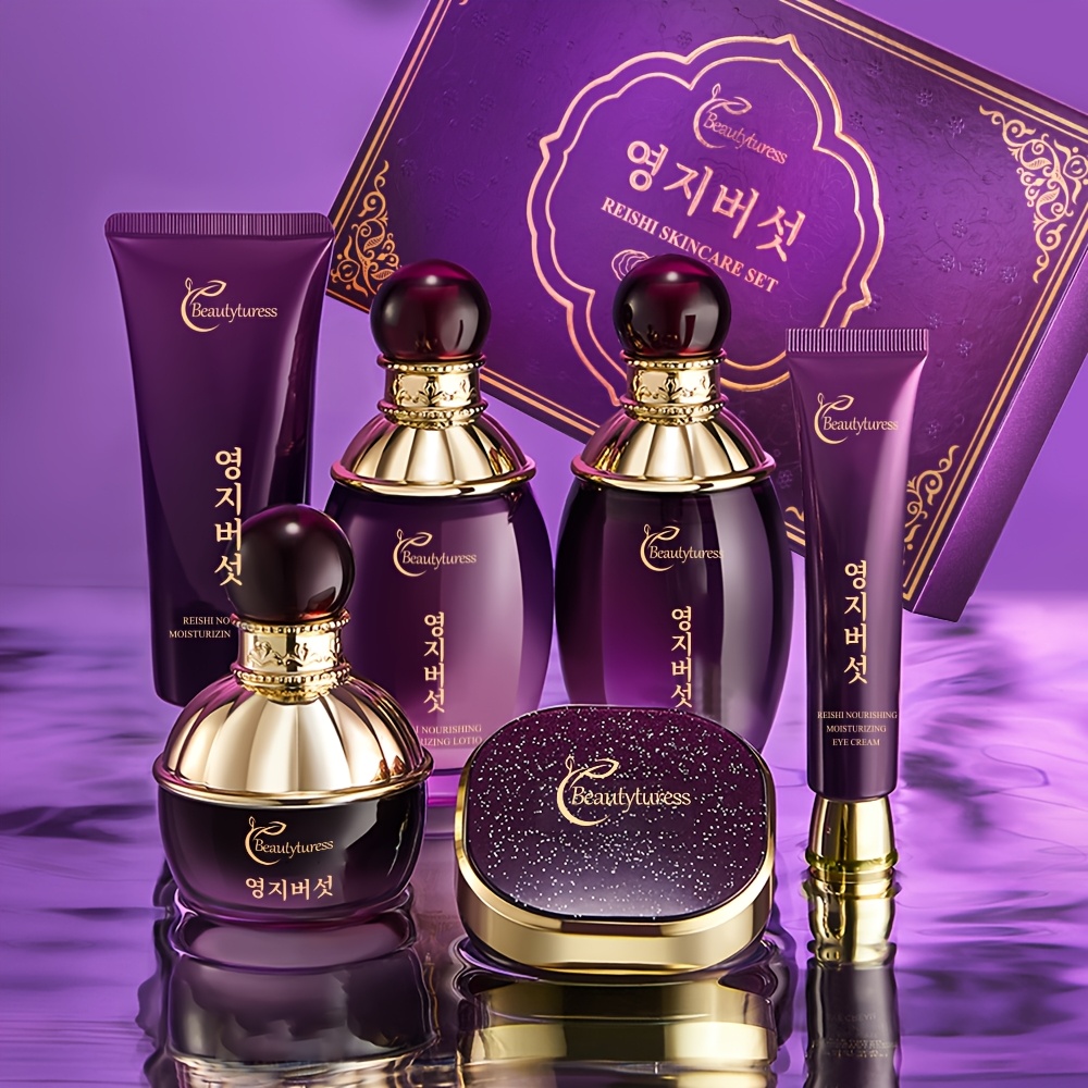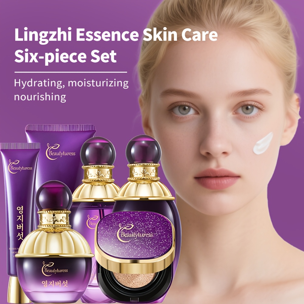 Complete Skincare Routine: Includes a cleanser, serum, moisturizer, eye cream, and compact foundation, offering a full