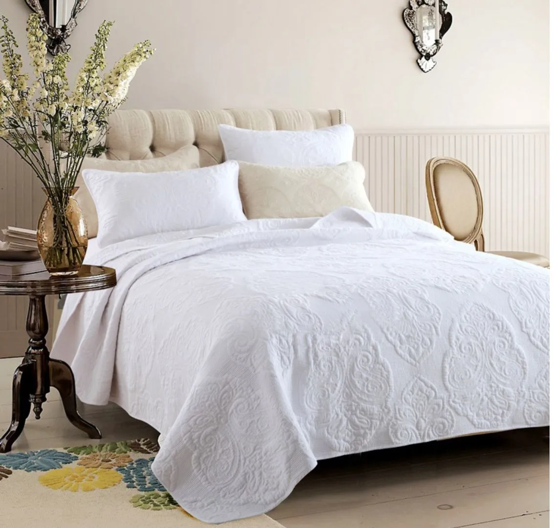 - Includes: 1 quilted bed cover, 2 matching pillowcases