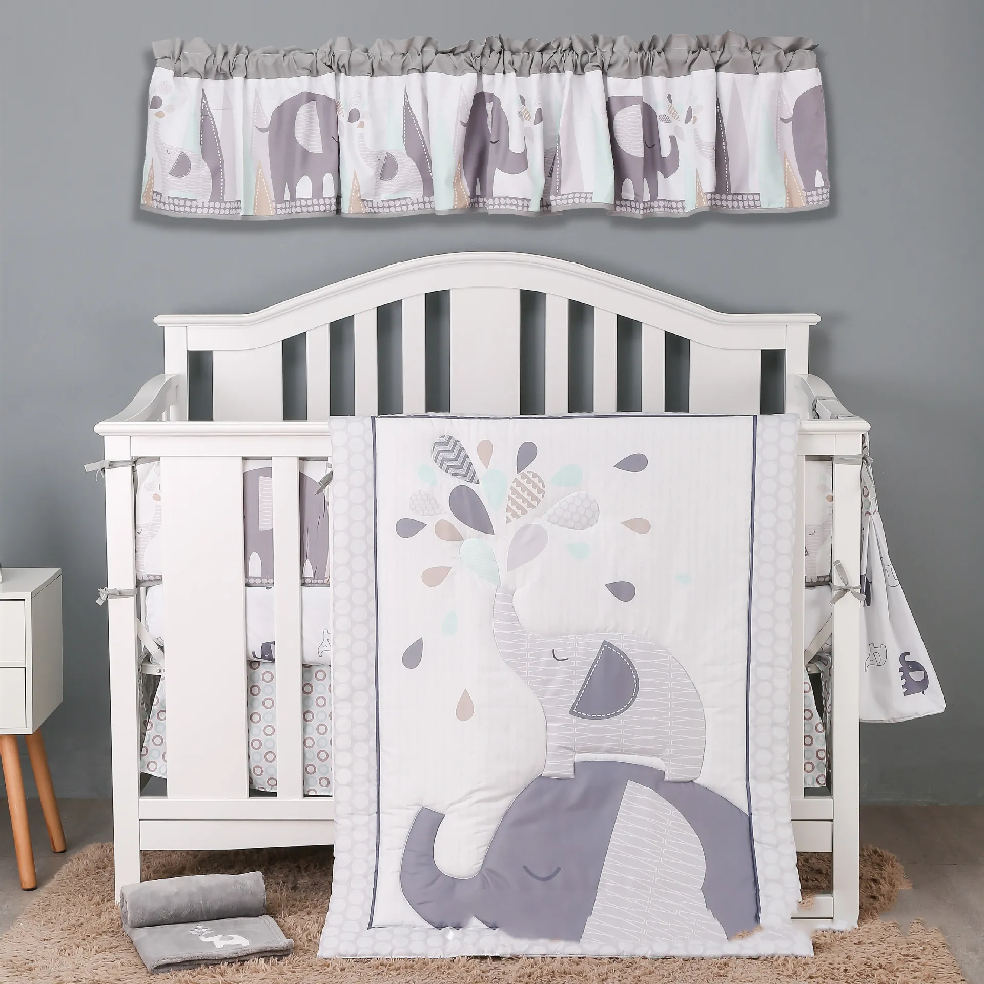 Quilt+bed circumference+fitted sheet+bed skirt+diaper bag+blanket+window curtain