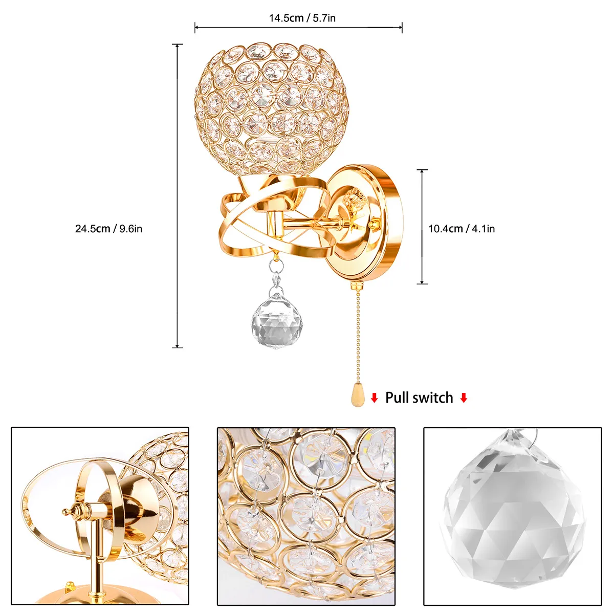 1. Creative modern style crystal pendant wall lamp, E14 socket (not including bulb)