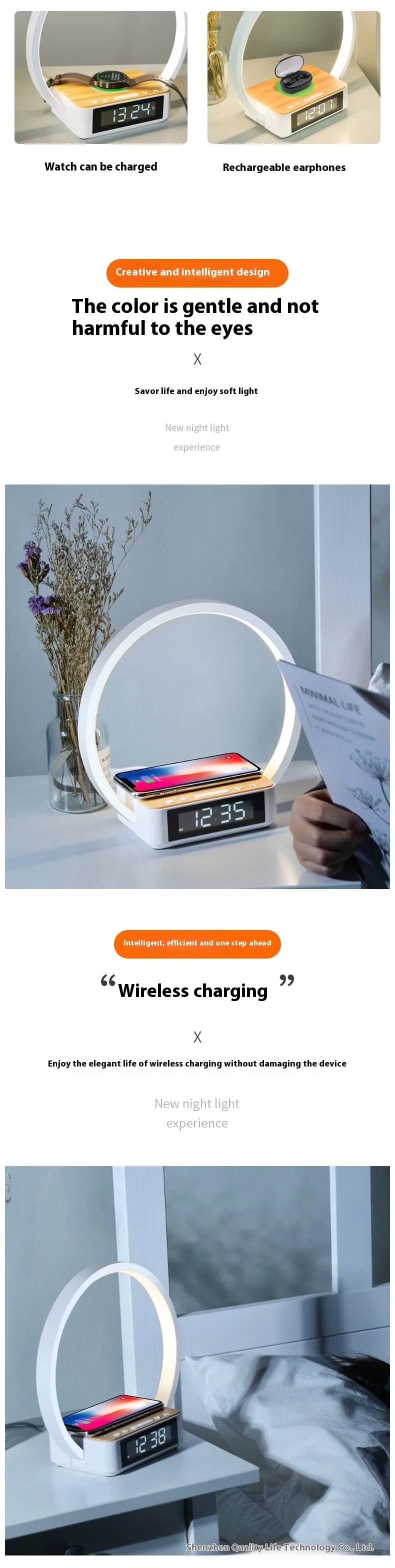 Simplify your nightstand with the Bedside Mobile Phone 10W Three-in-One Wireless Charger and Small Night Lamp. This multifunctional device combines a fast 10W wireless charger with a convenient night lamp, designed to make your evenings more comfortable and organized. The wireless charging pad allows you to charge your smartphone quickly and efficiently without the hassle of cables, while the compact night lamp provides soft, ambient lighting for your bedroom or living space. Perfect for bedside use, this device helps you keep your phone charged and adds a warm glow to your night routine.