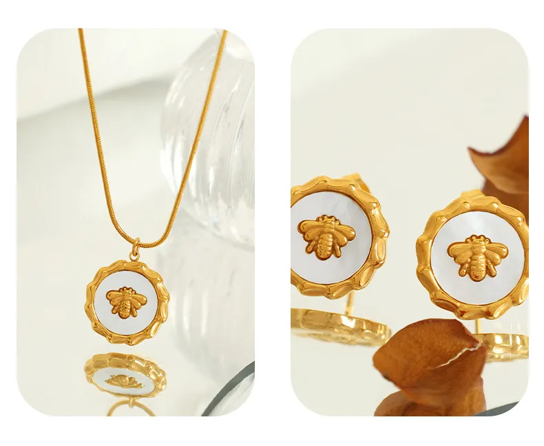 Color: EH507 gold stud earrings, XL174 gold necklace