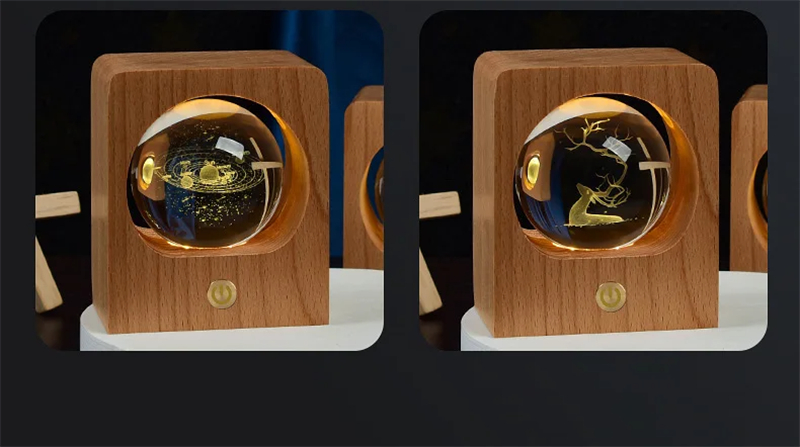 Beech Crystal Ball Night Light: 3D Laser Engraving LED Nightlights