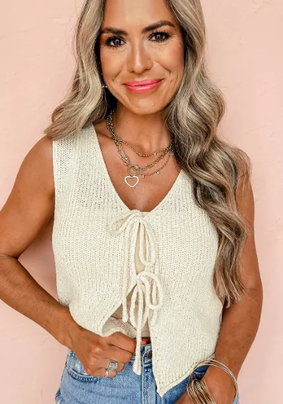 Stay stylish and comfortable with the Beige Lace-Up Front V Neck Sweater Vest, a versatile addition to your wardrobe that combines casual charm with a modern twist. Crafted from soft, breathable knit fabric, this vest features a flattering V-neck and a unique lace-up front detail that adds texture and visual interest.