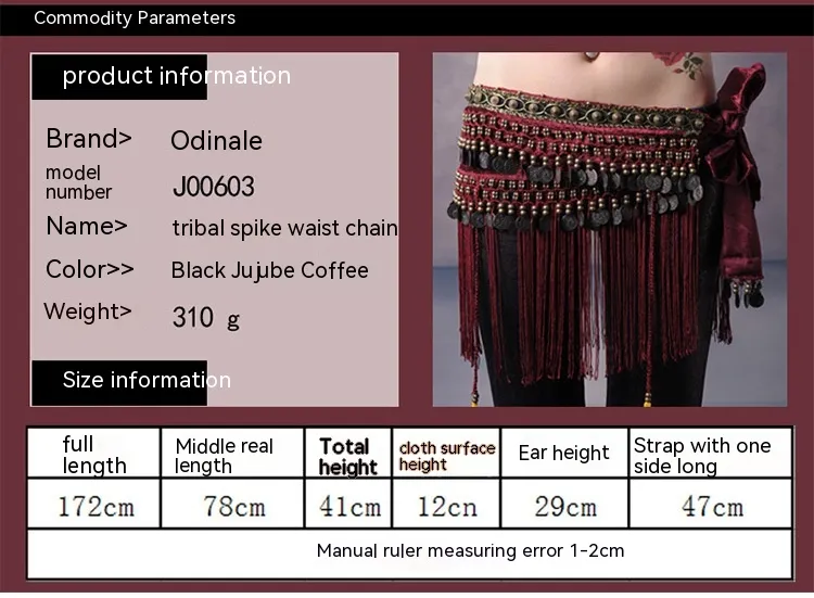 Promotes Fluid Movement: The design of the waist scarf complements the fluidity of belly dance movements, accentuating the