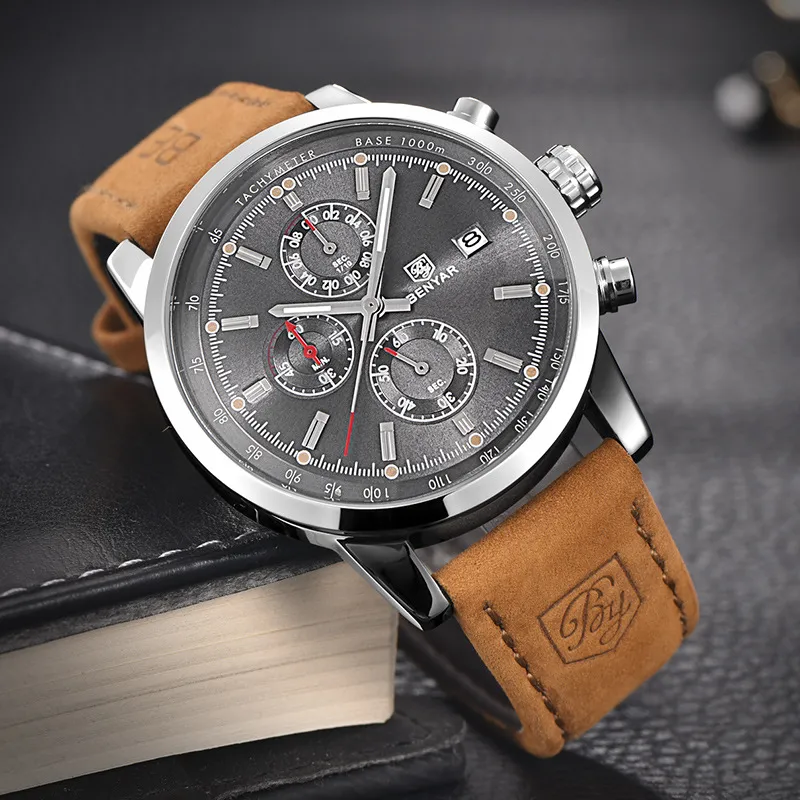 The BENYAR Benya Sports Three Eyed Watch is the perfect blend of style, function, and durability. Whether you're tracking your athletic performance, staying punctual, or adding a bold accessory to your wardrobe, this watch has everything you need. The stylish chronograph design, durable construction, and comfortable leather strap make it a great choice for those looking for a reliable and fashionable watch.