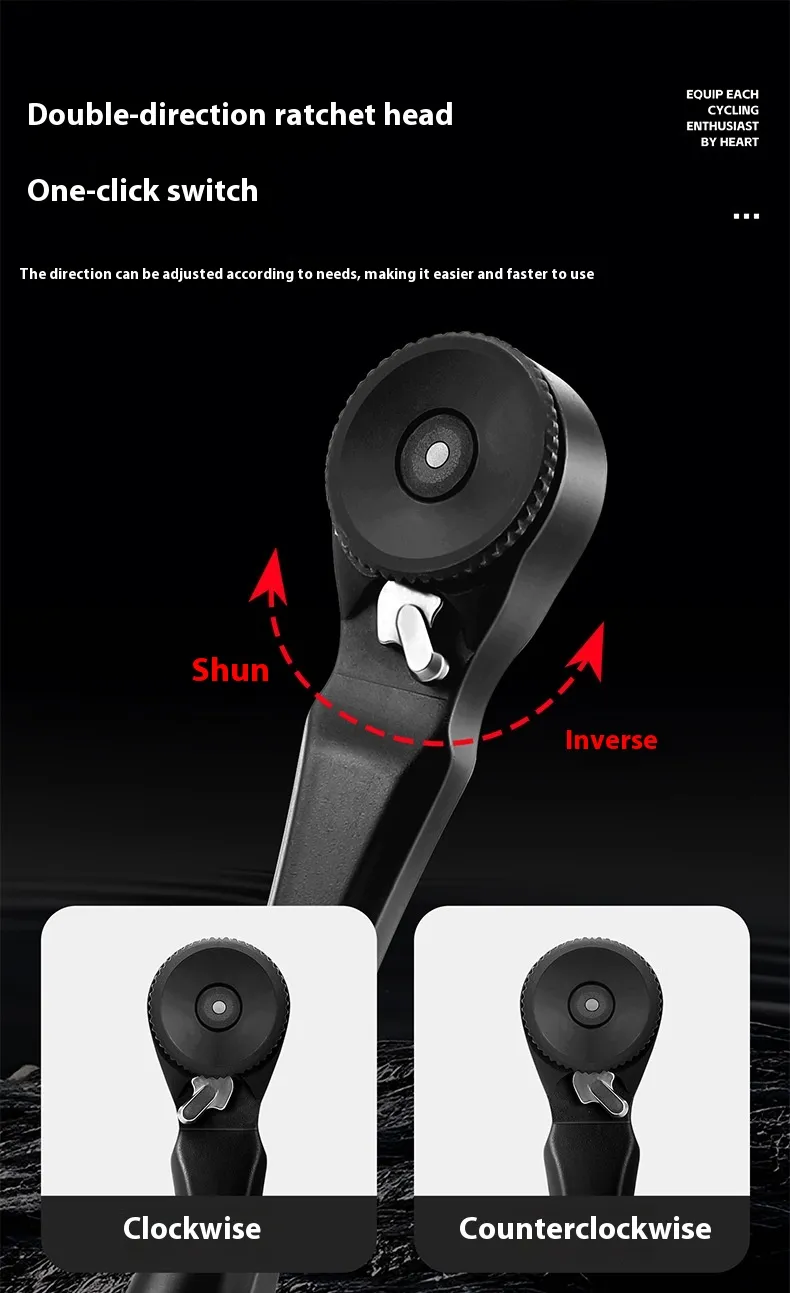 Tackle on-the-go bike repairs and routine maintenance with ease using the Bicycle Multifunctional Ratchet Spanner Set. Designed for cycling enthusiasts and commuters alike, this compact tool kit features a durable ratchet wrench with quick-release functionality, allowing you to handle tightening, loosening, and adjustments efficiently—whether you’re at home, on the trail, or by the roadside.