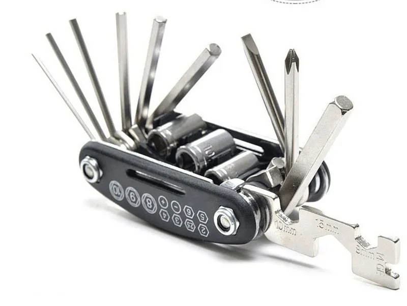 The compact design of the combination tool makes it easy to carry in your backpack, saddlebag, or even your pocket. Despite its small size, it features a range of essential tools, including screwdrivers, wrenches, and tire levers, ensuring you're ready to tackle any bike-related issue. Whether you're on a mountain bike trail, cycling through the city, or preparing for a long-distance ride, this tool ensures you're always prepared for any situation.
